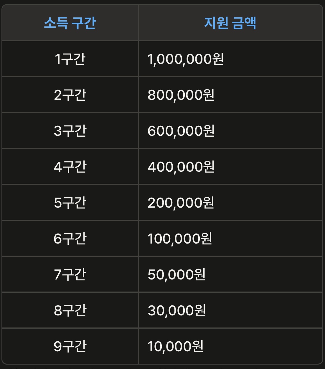 아래 표를 통해 구간별 지원 금액을 확인해 보세요.