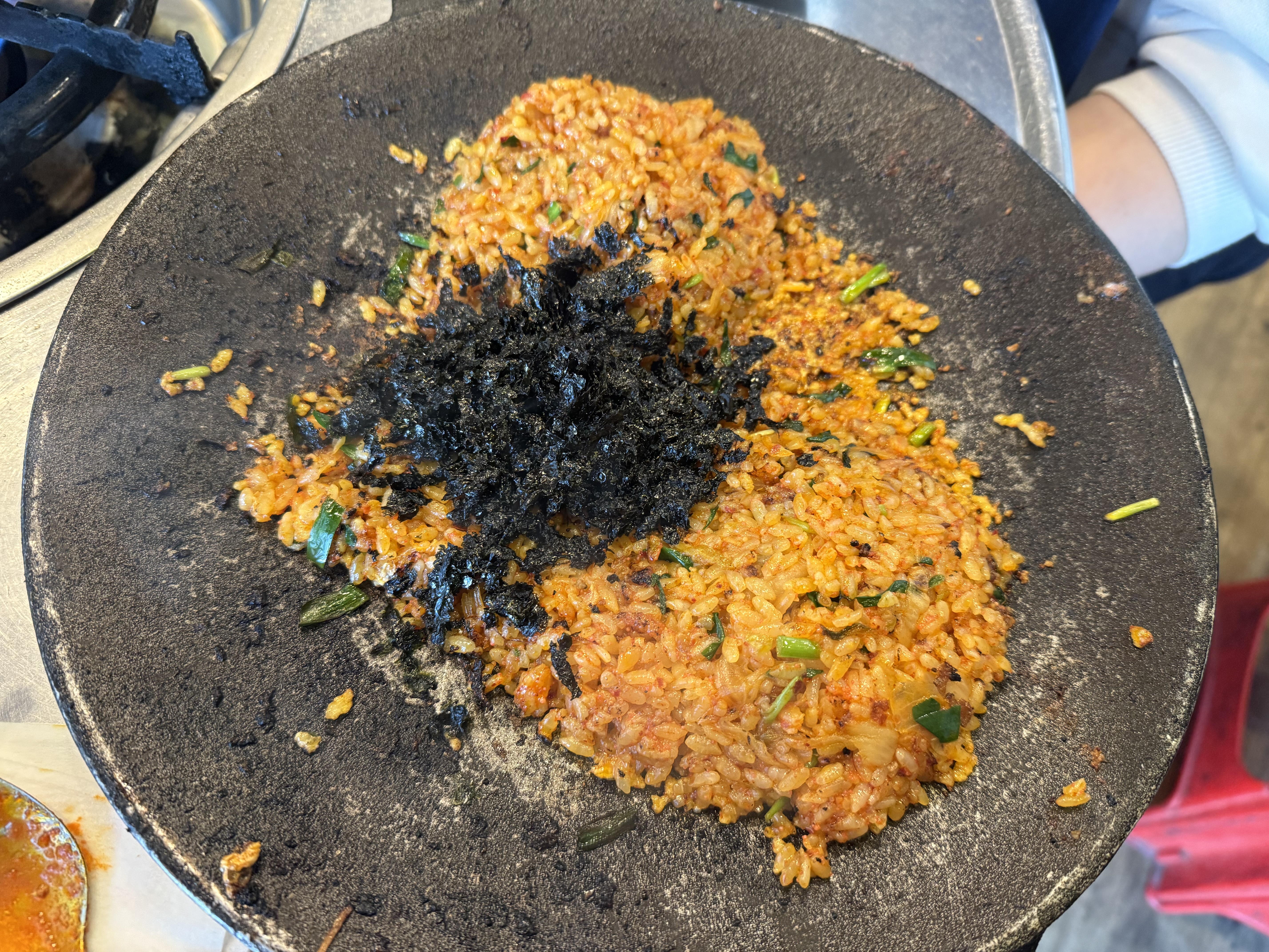 (볶음밥 테이블에 놓고 , 찌개 끓이면서 먹음)