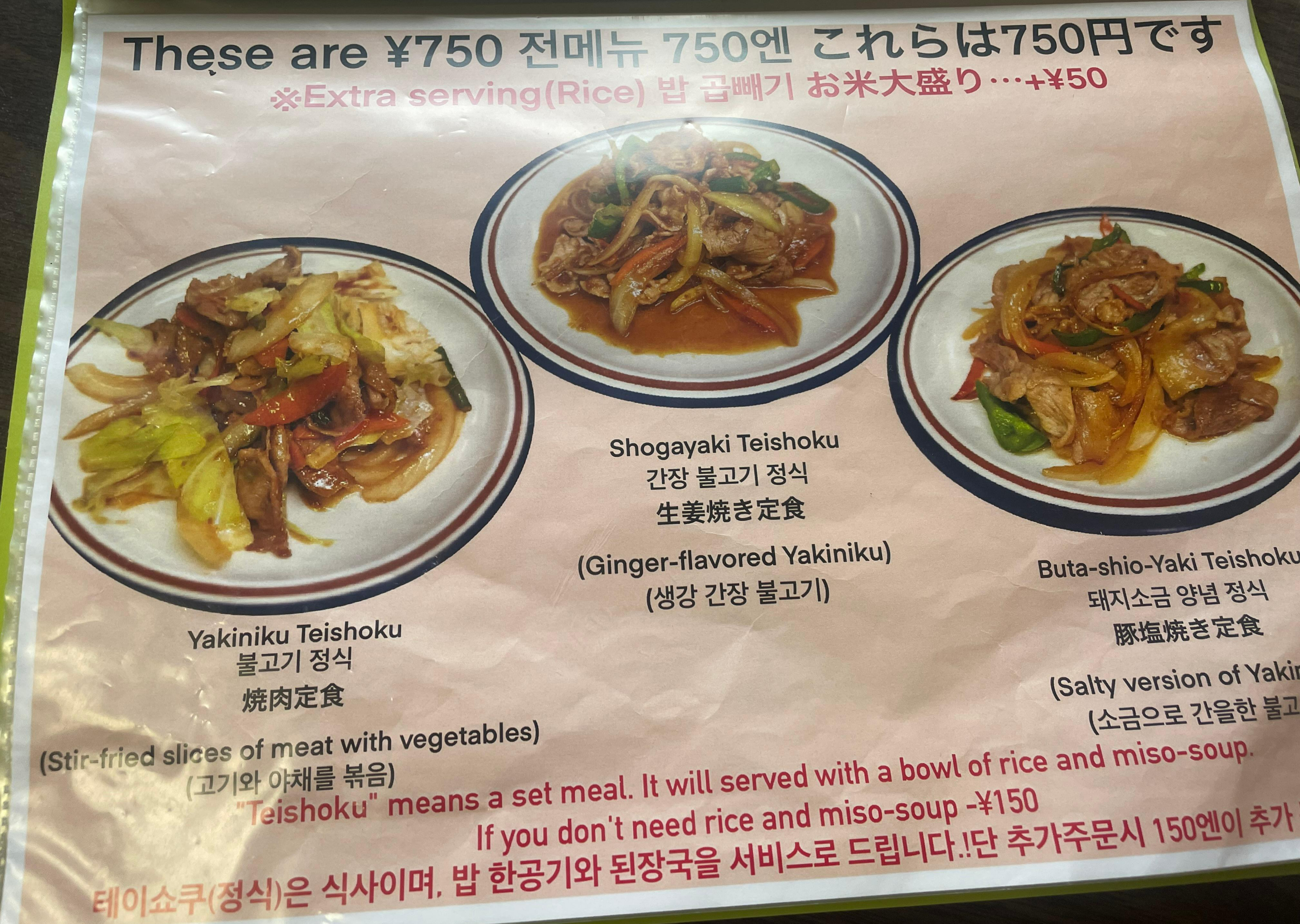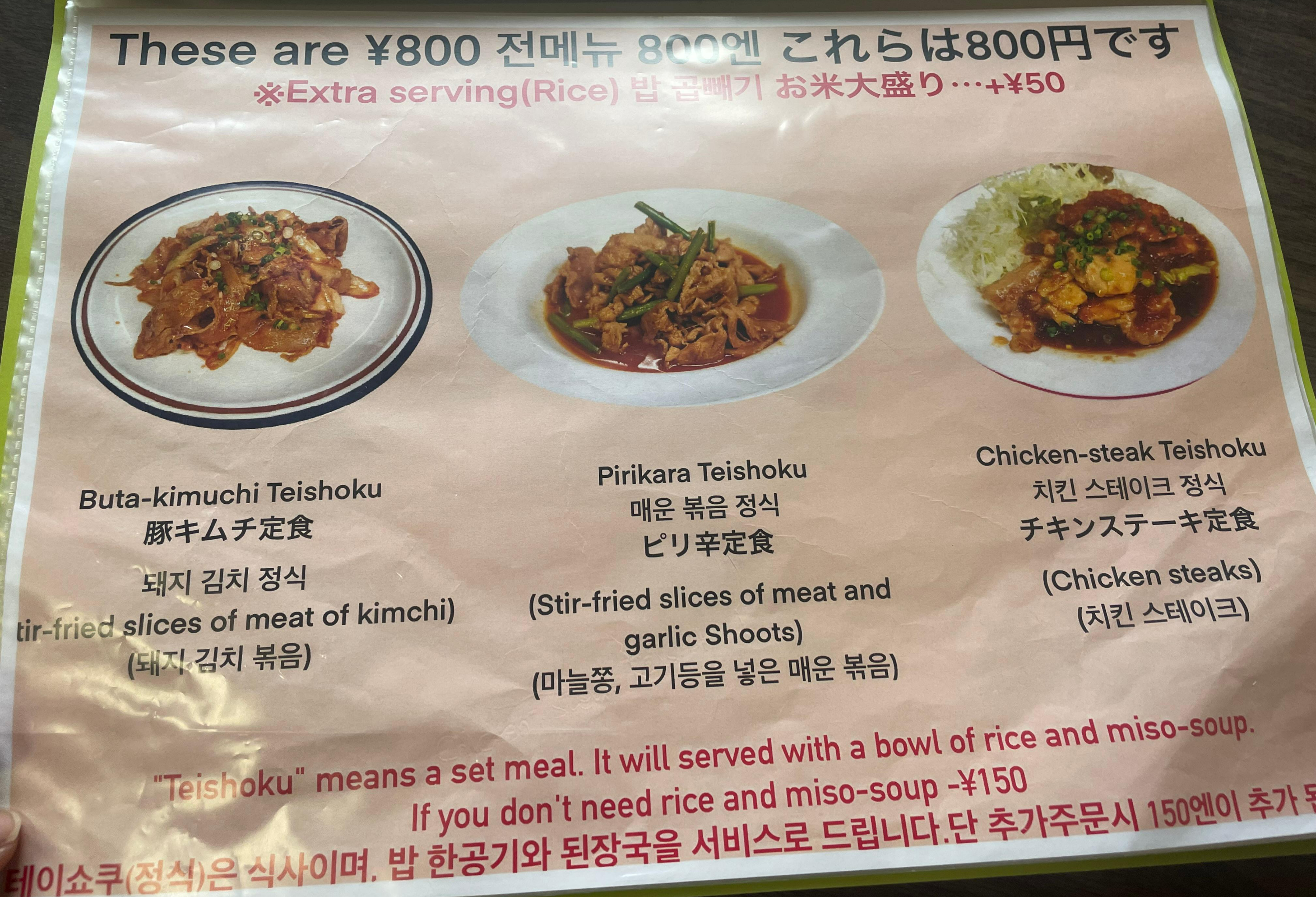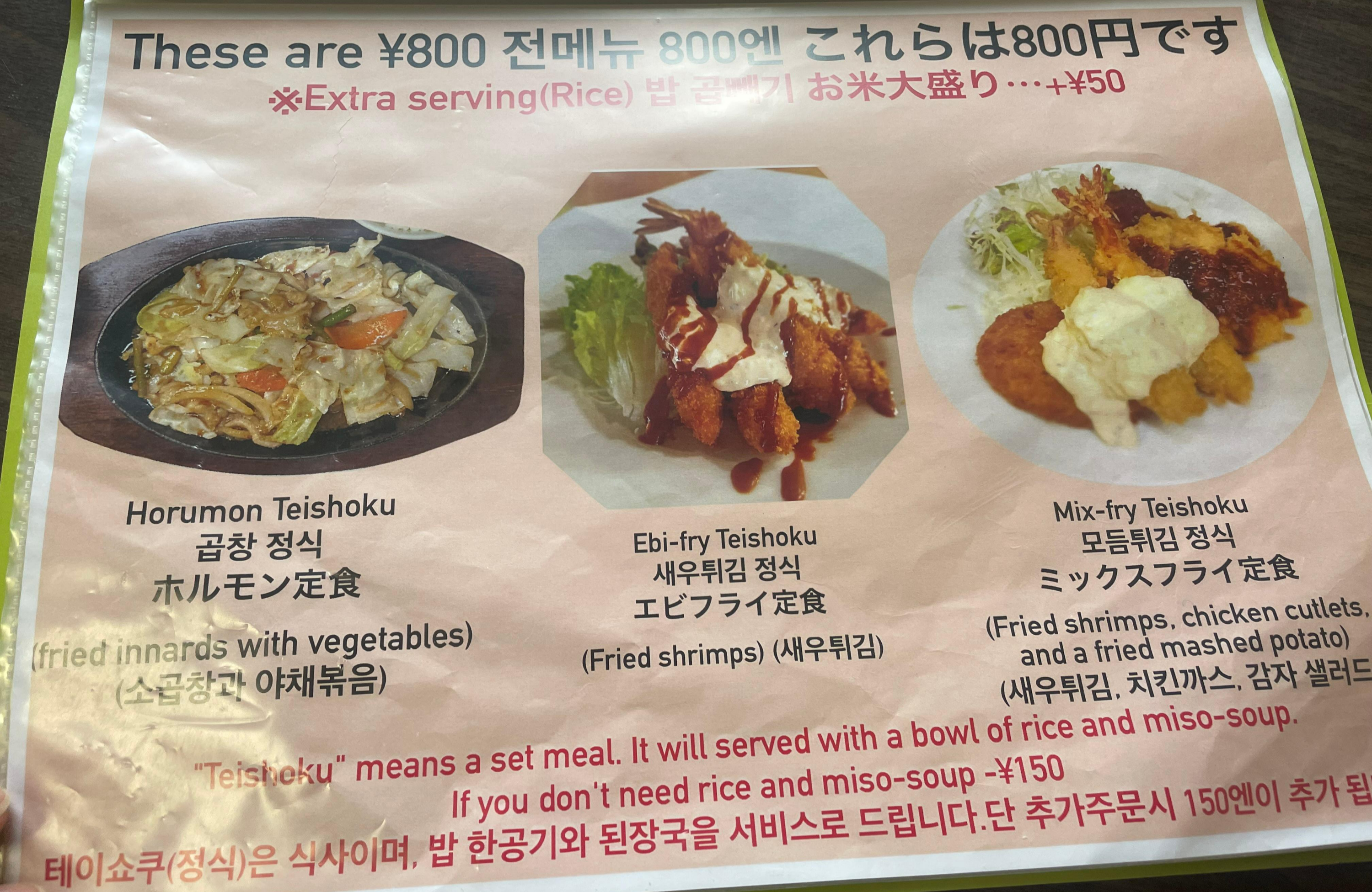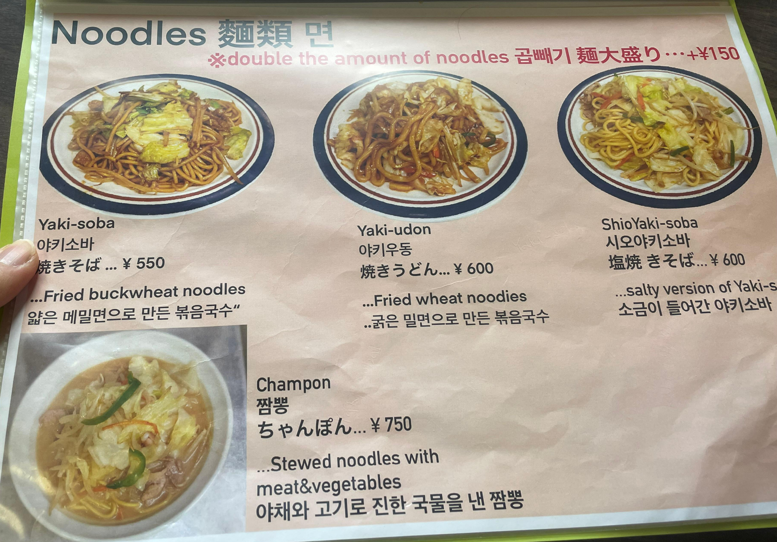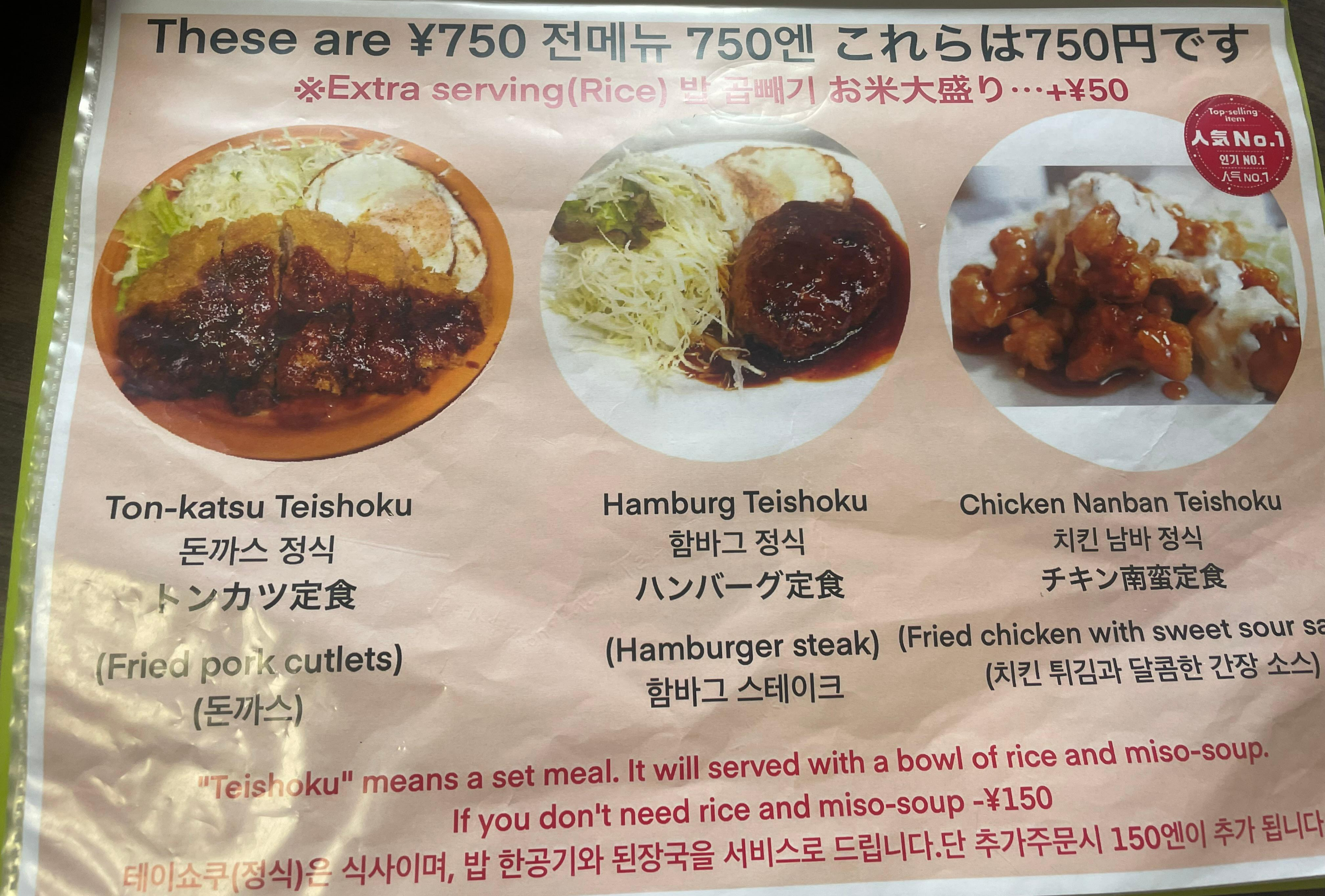 2) 내용 : 이곳 주문은 함바그 & 치킨남바 & 야키우동 (학생들이 방문 많이함, 한국인 방문 적음)