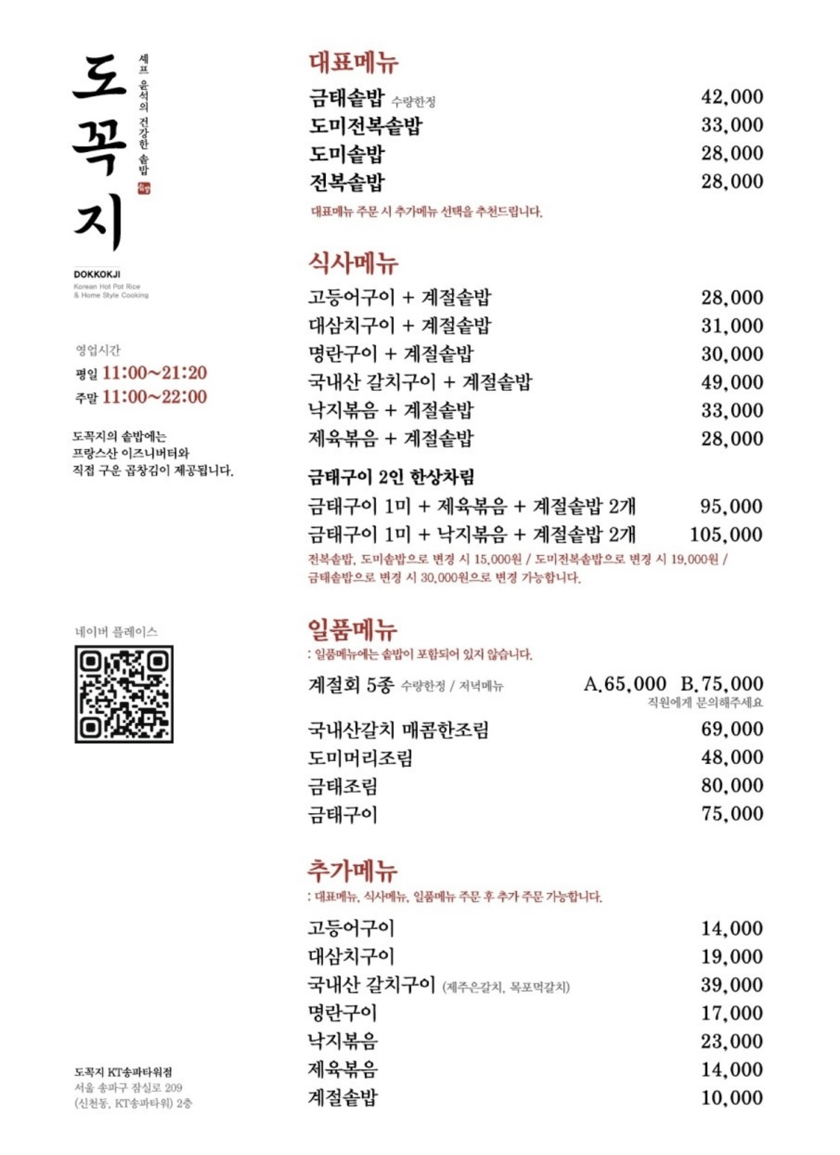 금태솥밥 + 계절솥밥 (42,000원)