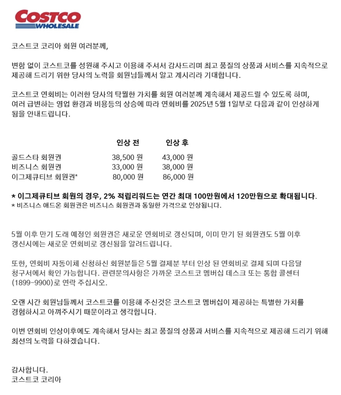 [코스트코] 25년5월1일 연회비 인상, 과연 고객의 반응은? 본문