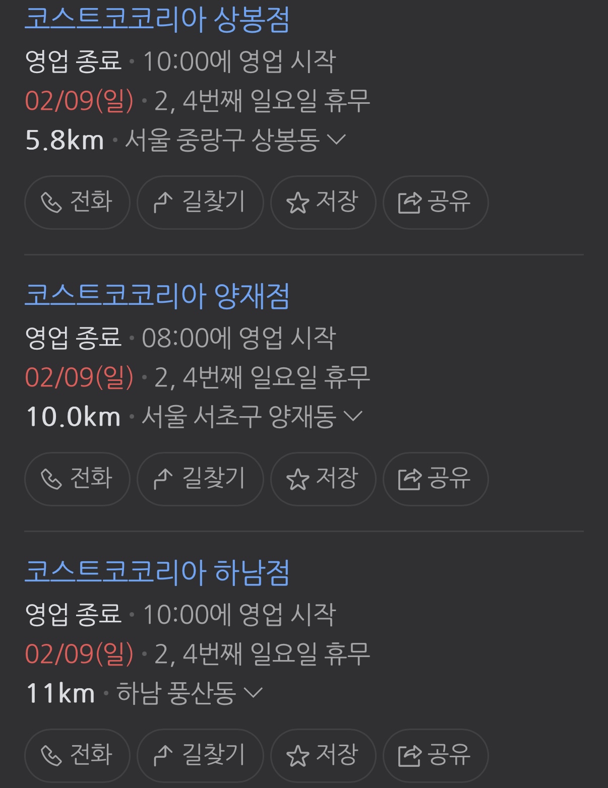 코스트코의 운영 시간과 휴무일도 체크해야 해요.